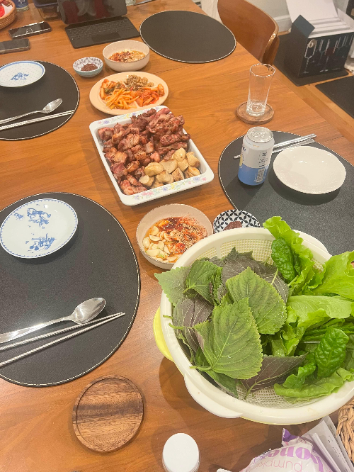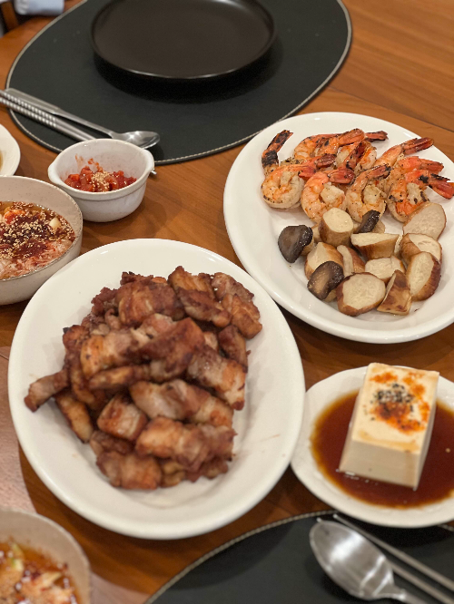 조카가 떠나는 날이 돌아와서, 지금까지 뭐가 제일 맛있었냐 물으니 삼겹살이란다. 밖에서 고기를 굽기에는 너무 추워서 실내에서 구웠다.