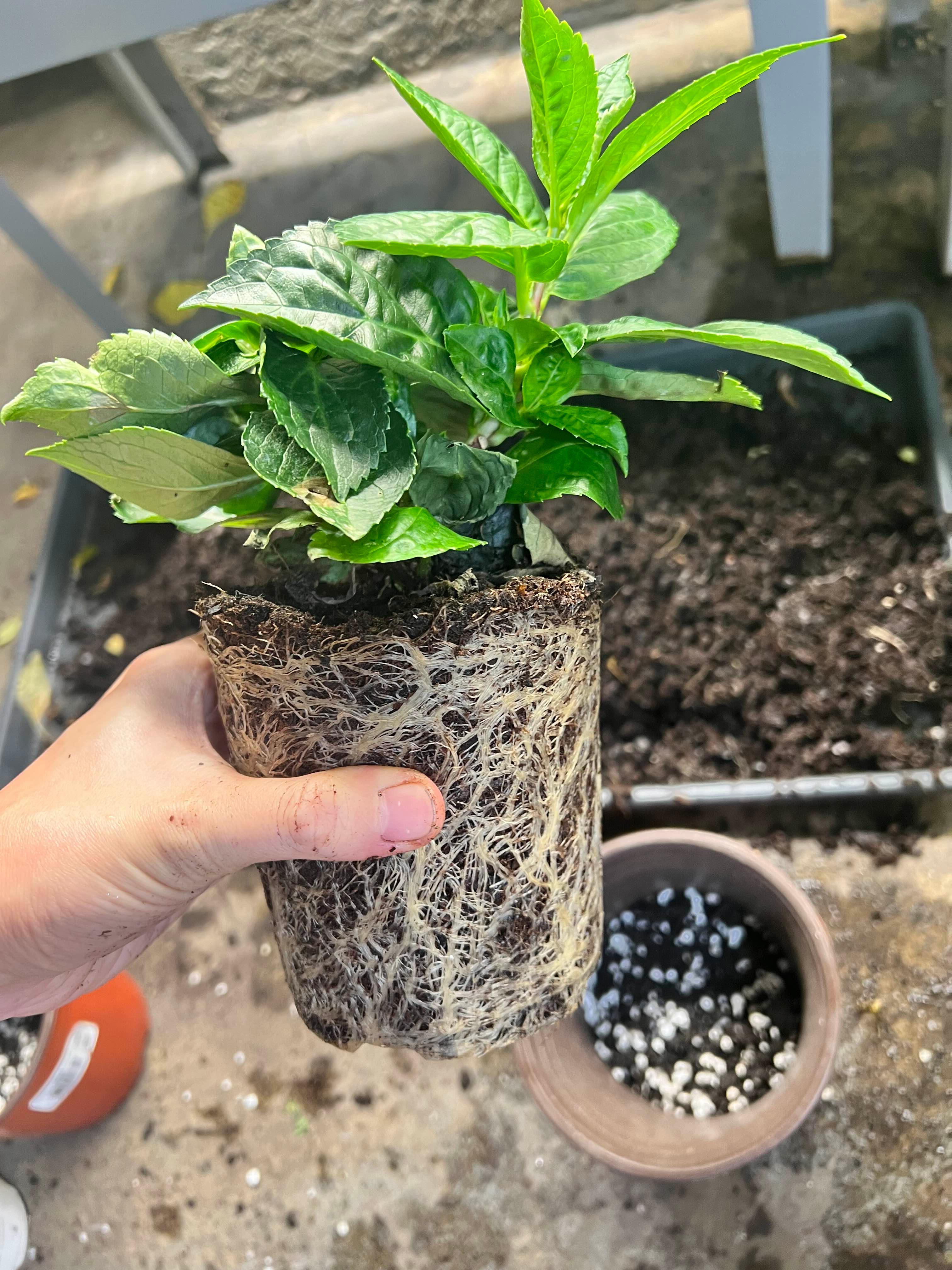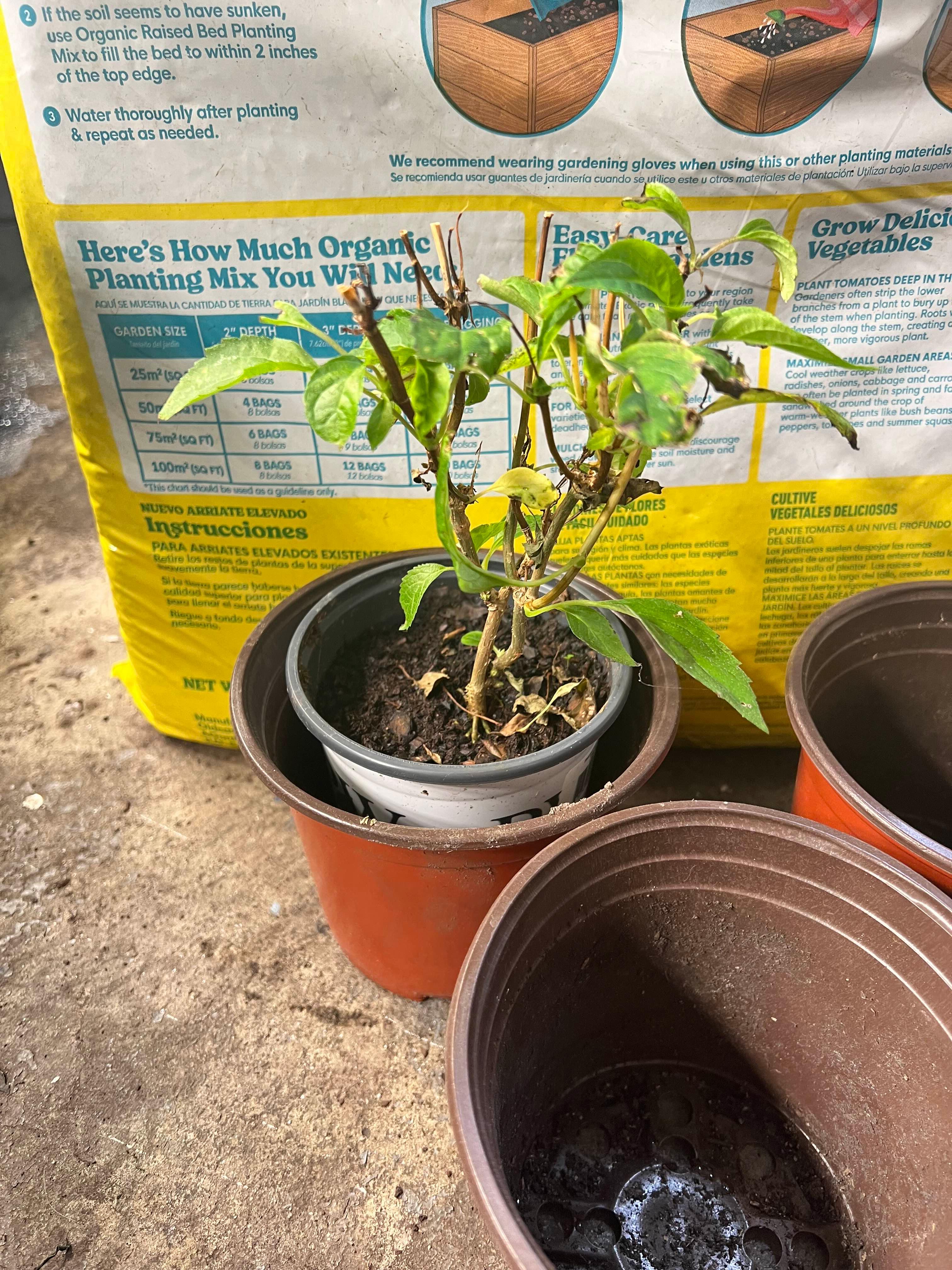 떨이세일로 구매한 수국이 dormant 상태로 들어섰다. 그래도 겨우내 뿌리 생장은 할테니, 조금 큰 화분으로 분갈이를 해주었다.