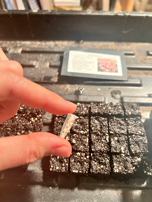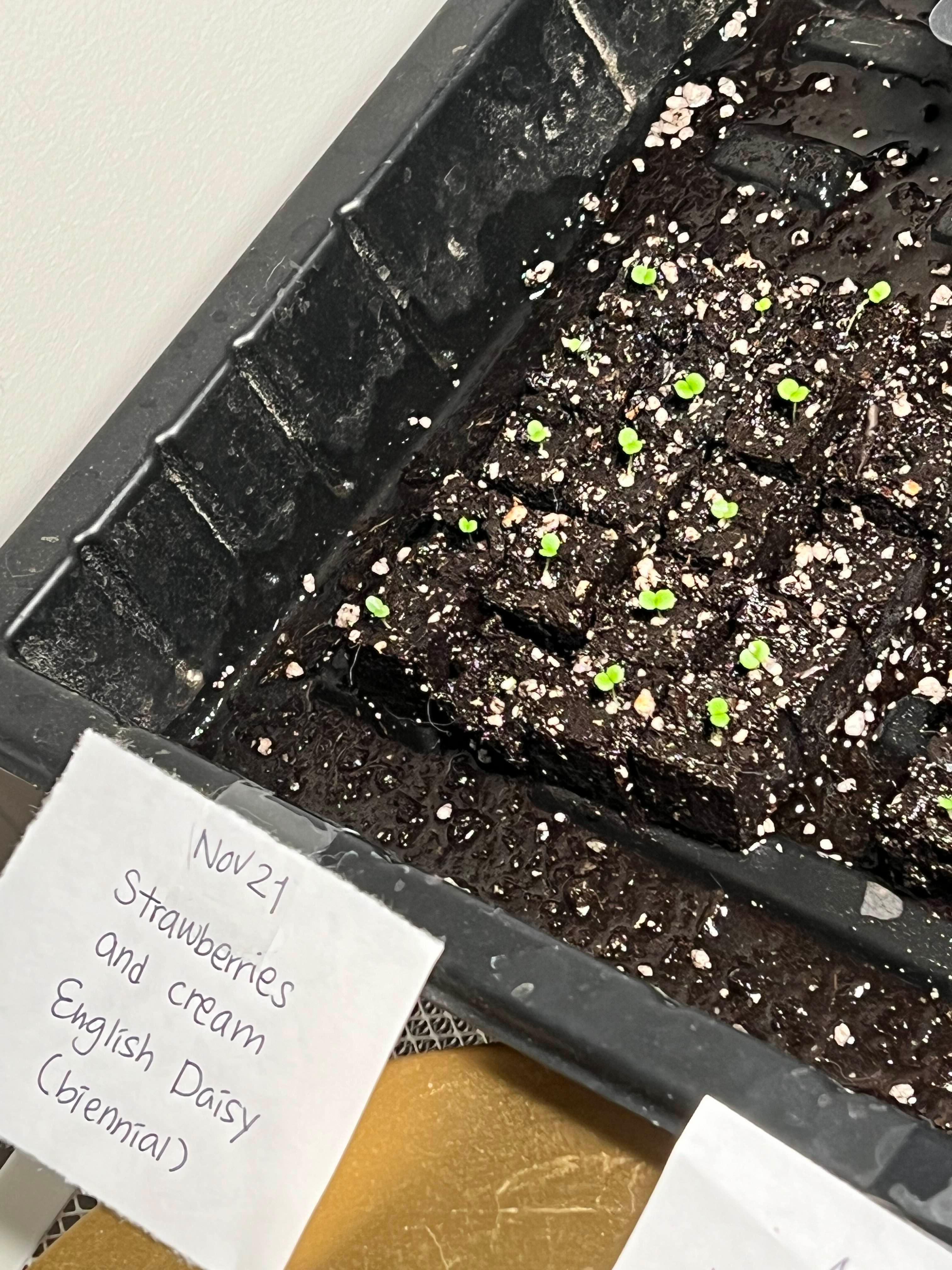 저녁에는 잉글리시 데이지 스트로베리 & 크림 파종. 펠렛 씨앗이어도 크기가 작아서, 작은 소일블럭에 파종해주었다.