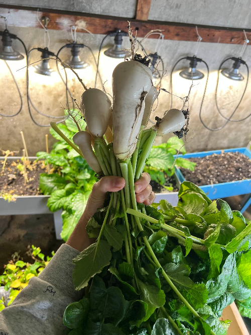 오늘의 지하실 수확물은 알타리무. 무도 당근도 햇빛과 토양이 중요하지만, 더 중요한건 안 건드리고 오래 둘 수 있는 공간인듯하다. 성질 급한 가드너에겐 여러모로 힘든 작물. 단군신화에서 100일동안 먹어야할건 쑥과 마늘이지만 100일동안 뭔가를 키우라고 했다면 아마 당근과 무가 아니었을까...