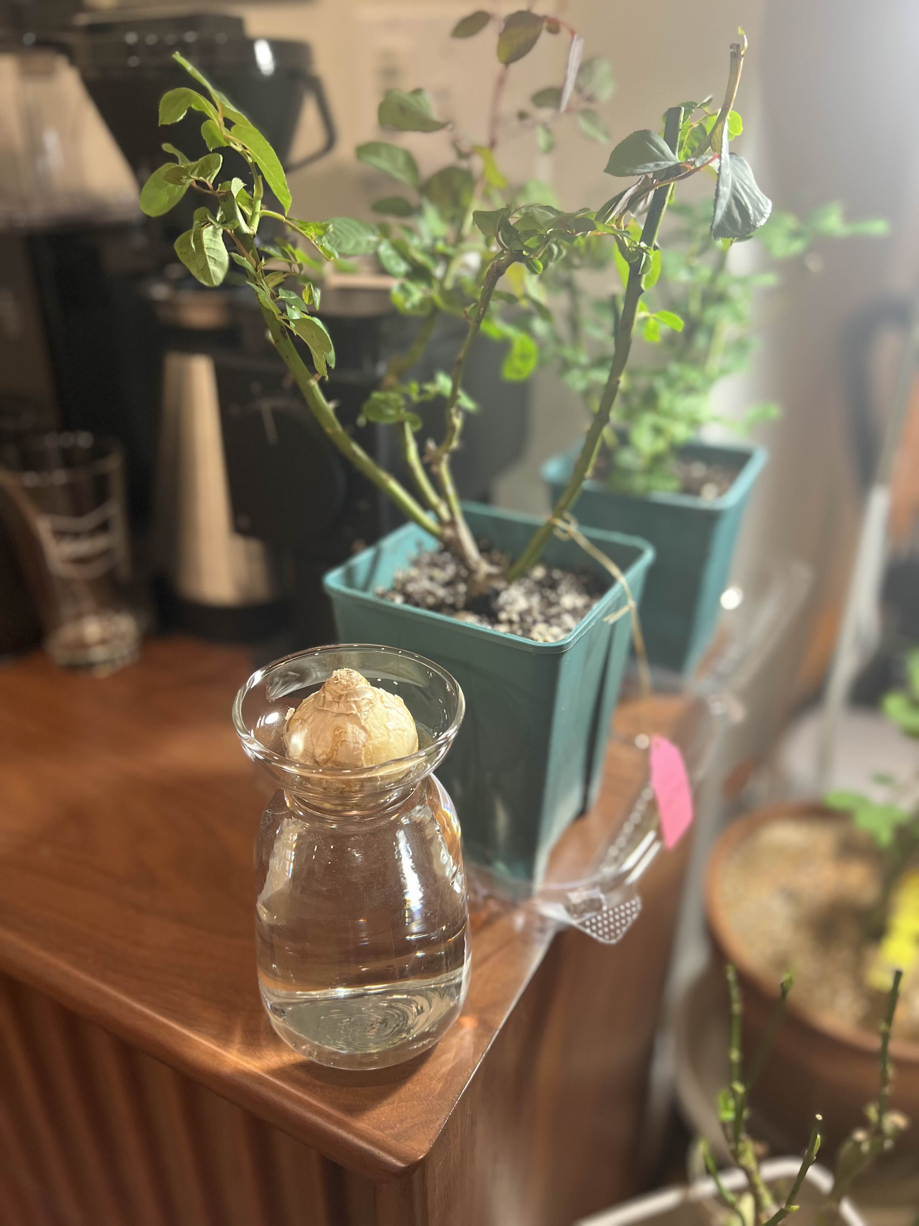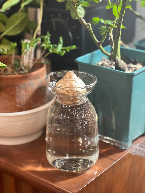수경재배 꽃병에 꽂아둔 히아신스 구근에서 조금씩 뿌리가 나와기 시작한다. 어릴때 엄마가 이렇게 수경재배 히아신스를 키우셨는데.. 갑자기 그리운 마음이 들어서 나도 따라해본다.
