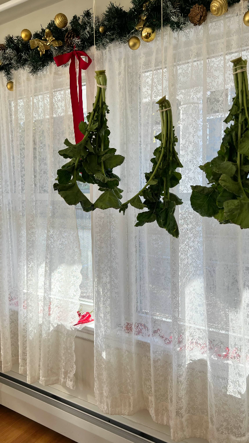 무청 시래기는 공기난방 환경에서 며칠만에 바싹 말라버렸다. 빠르기도 해라.