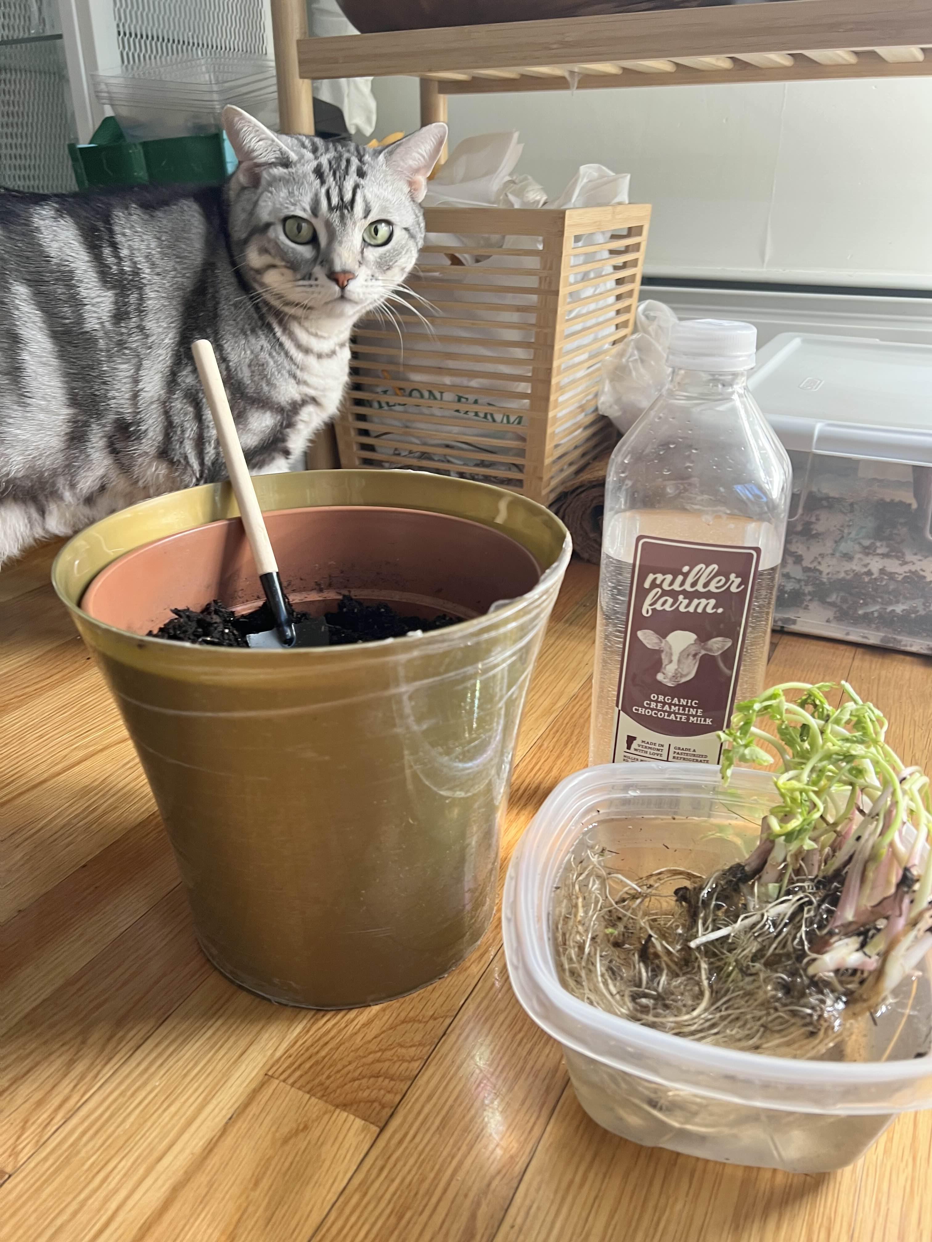 덕분에 물에 꽂아둔 미나리를 옮겨심었다. 마사토 같은게 없어서 대체제인 펄라이트를 왕창 섞고 indoor potting mix 넣고 대충 꽂아줌.