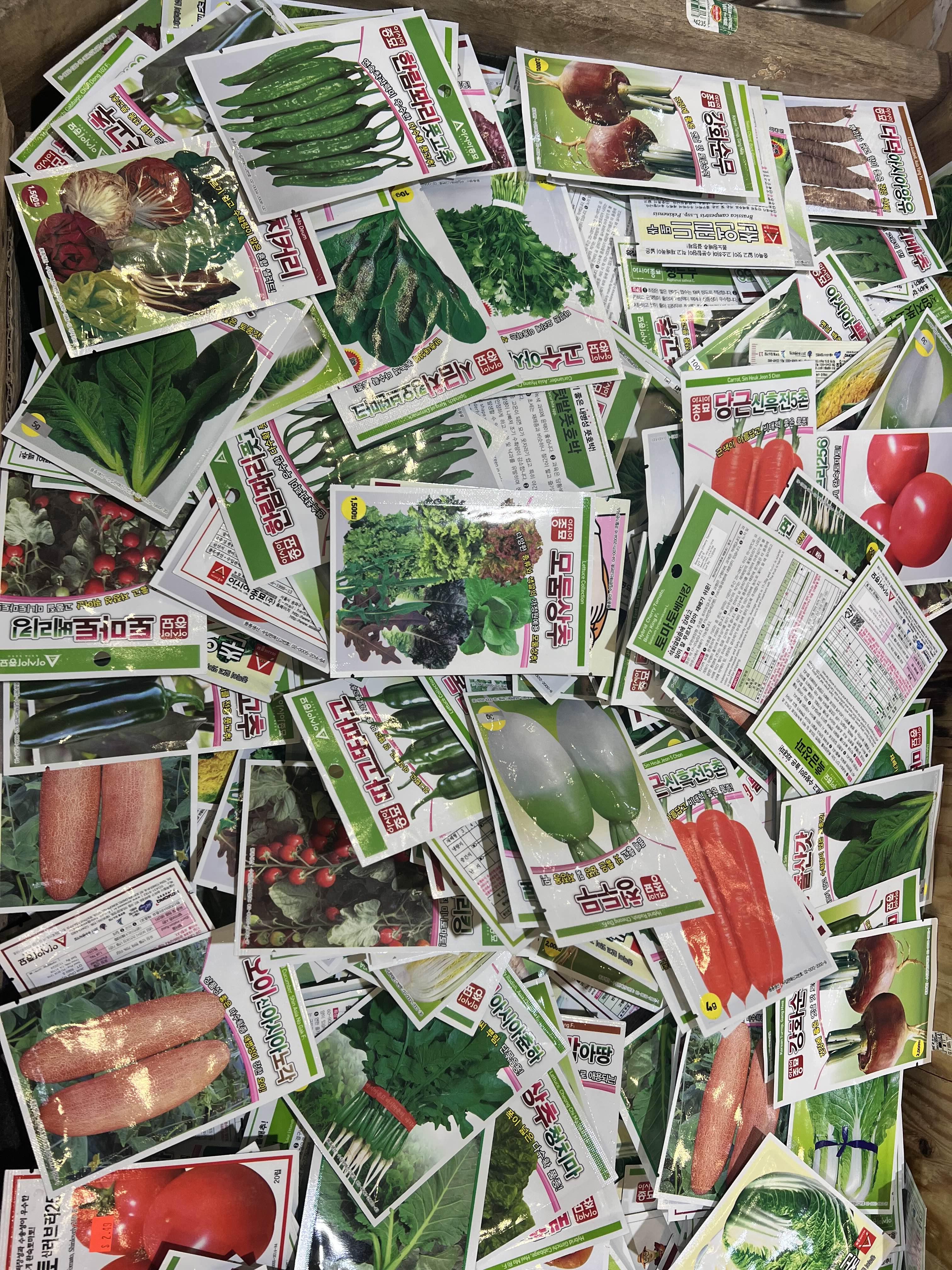 미국 내 Korean society의 heirloom seeds들을 받을 수 있다. 어디서부터 파생되어 온 씨앗인지는 모르지만 (don’t ask, don’t tell) 갖은 꽃씨부터 약초와 구근까지 없는 게 없다. 미국 전역 곳곳에 숨은 고수들이 한국 채소를 수십년간 키워온 산물이다. 솔직히 이런분들 멋있다.