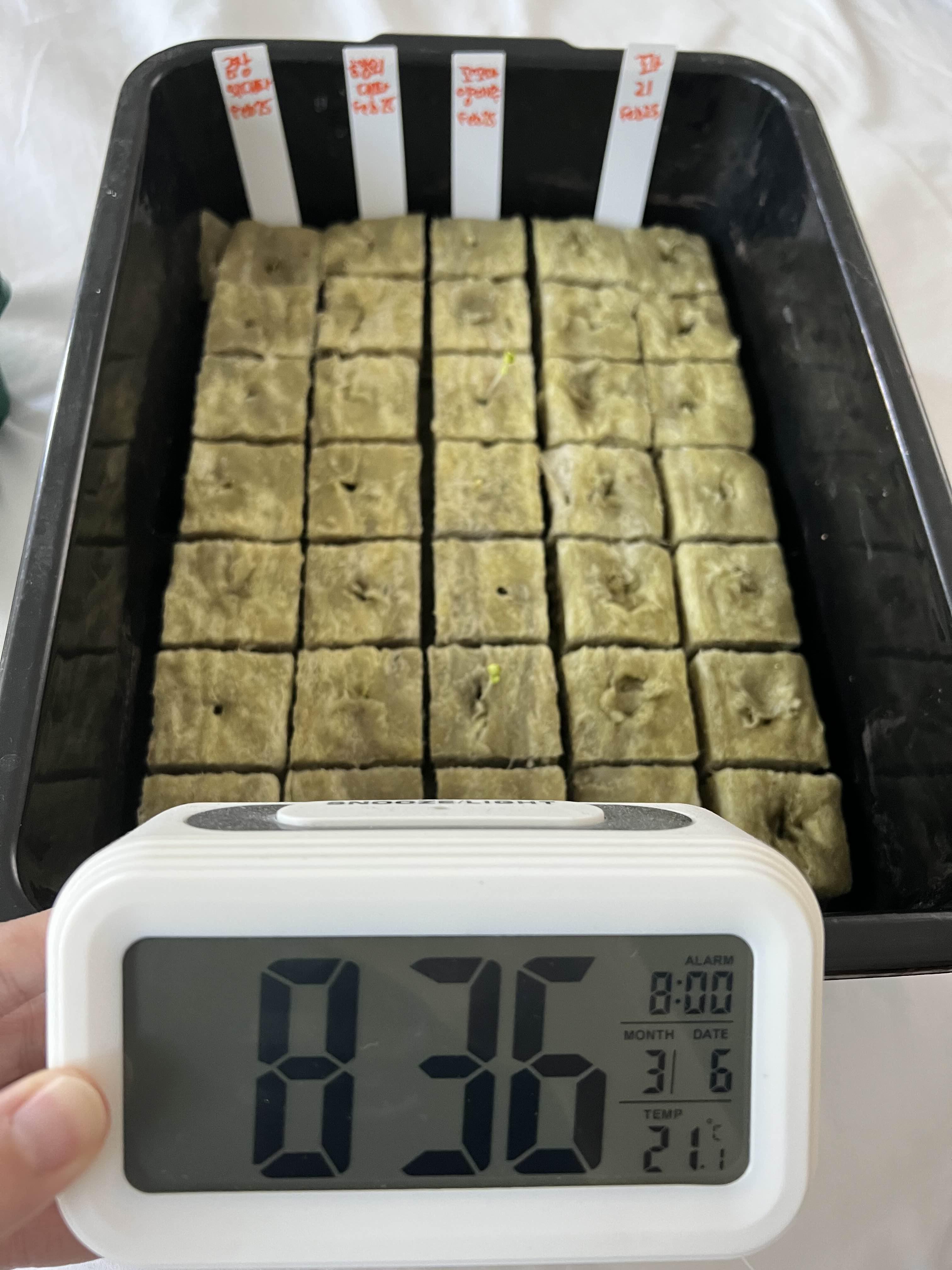 싹의 길이가 길어져서 주렁주렁 달고 있는 씨앗껍질부분들을 다 잘라주었다. 가끔 이렇게 스트레스를 주는게 뿌리를 강화하고 모종을 더 튼튼히 키우는 방법이라는 게 재밌는 점이다.